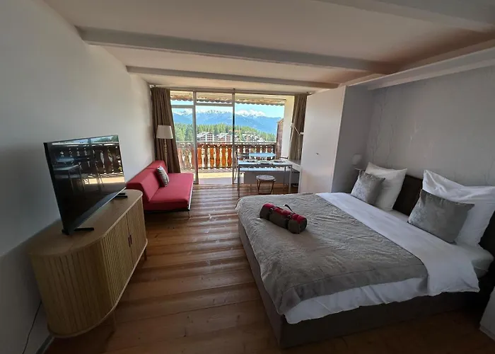 El Vue Panoramique, Piscine, Spa, Ski In-Out & Golf A L'Hotel De L'Etrier A Crans-Montana ofrece una piscina y se encuentra a unos 4 km del Funitel Violettes-Plaine Morte. Además de las vistas de la piscina, este apartamento de 30 m² garantiza la relajación de los huéspedes con piscina cubierta.